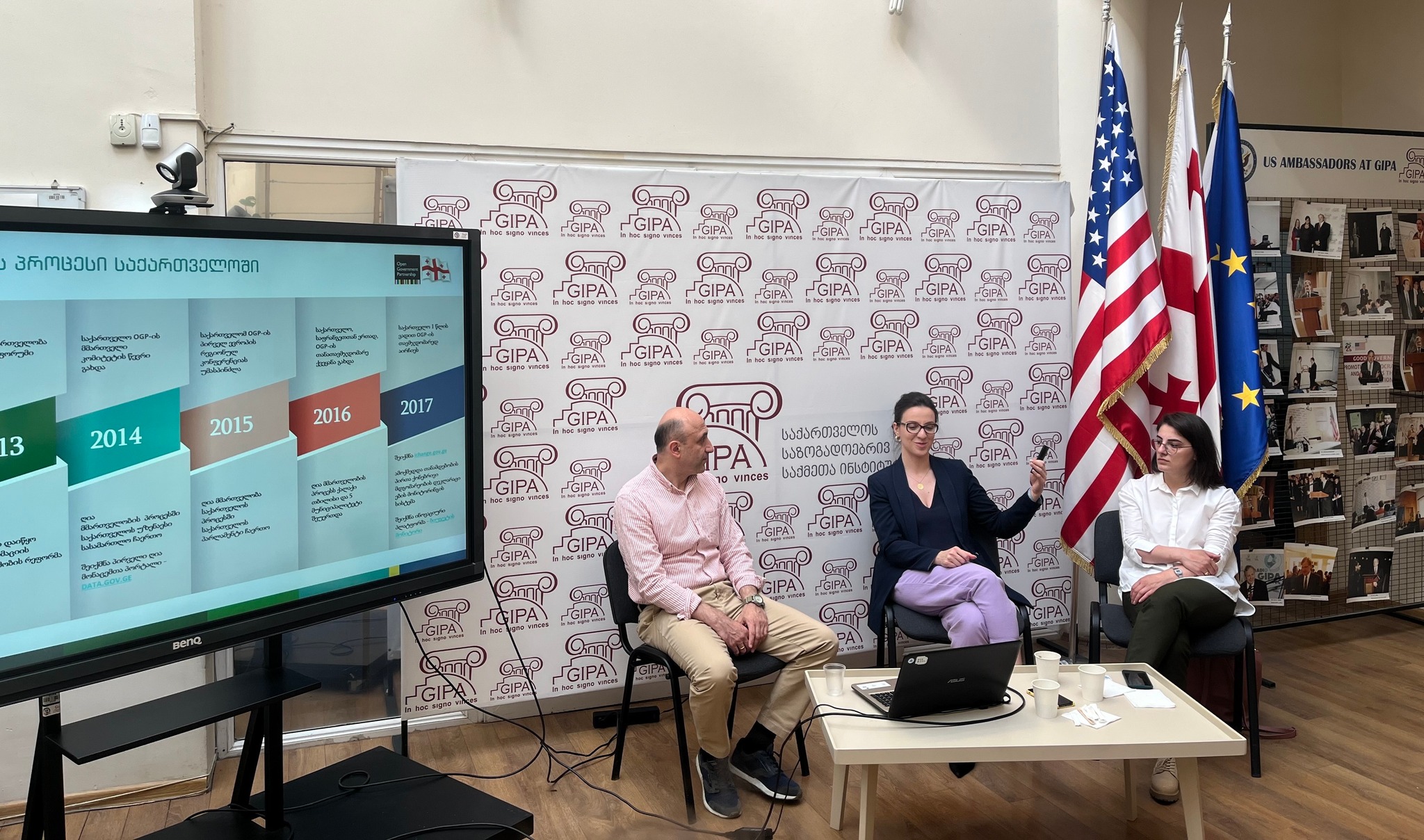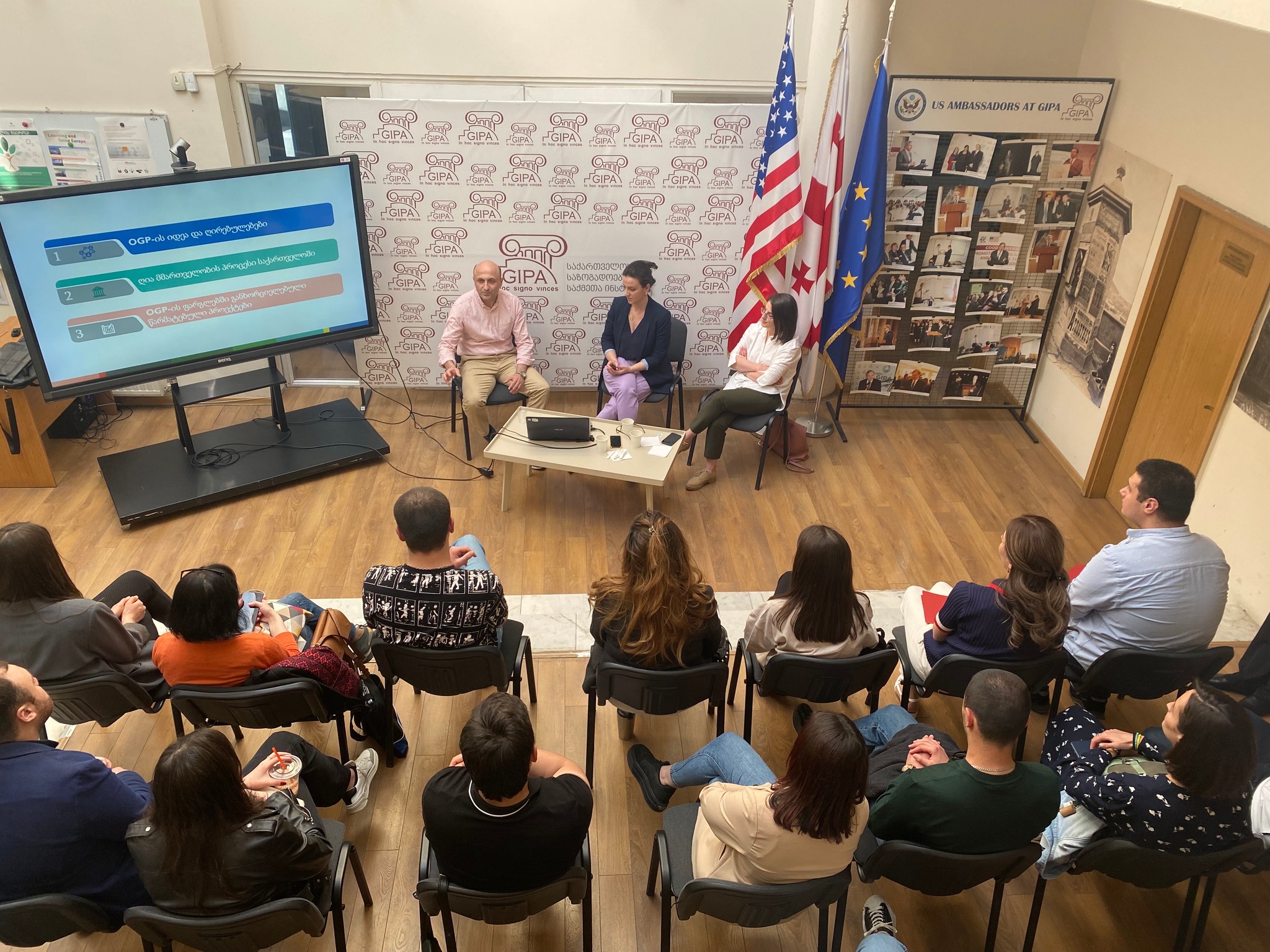 შეხვედრაზე ღია მმართველობა საქართველოს სამდივნოს ხელმძღვანელმა, ქეთი ცანავამ და საქართველოს ახალგაზრდა იურისტთა ასოციაციის დემოკრატიული ინსტიტუტების მხარდაჭერის პროგრამის პროექტების კოორდინატორმა, სალომე საღარაძემ, სტუდენტებს ინფორმაცია მიაწოდეს  ღია მმართველობის პარტნიორობის (Open Government Partnership – OGP) პოლიტიკის ძირითადი მიმართულებებისა და პრინციპების, ასევე, OGP-ში საქართველოს მონაწილეობისა და ოთხი სამოქმედო გეგმის ფარგლებში განხორციელებული მნიშვნელოვანი რეფორმების შესახებ. GIPA-ში გამართულ შეხვედრას მოდერაციას უწევდა მიხეილ დარჩიაშვილი, GIPA-ს პროფესორი და USAID-ის პროექტის - დემოკრატიული მმართველობის ინიციატივის (GGI) სახელმწიფო მართვის პროგრამის მენეჯერი.